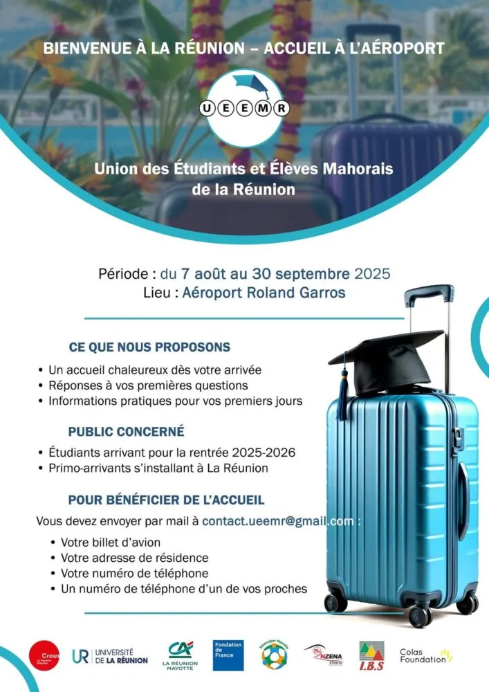 L’Union des Étudiants et Élèves Mahorais de La Réunion (UEEMR) a lancé, depuis le 7 août 2025, son dispositif d’accueil destiné aux nouveaux arrivants pour la rentrée universitaire 2025-2026. L’opération se déroule à l’aéroport Roland Garros jusqu’au 30 septembre 2025. Objectif : offrir un accueil chaleureux, répondre aux premières questions et fournir des informations pratiques aux étudiants et primo-arrivants qui s’installent sur l’île.
