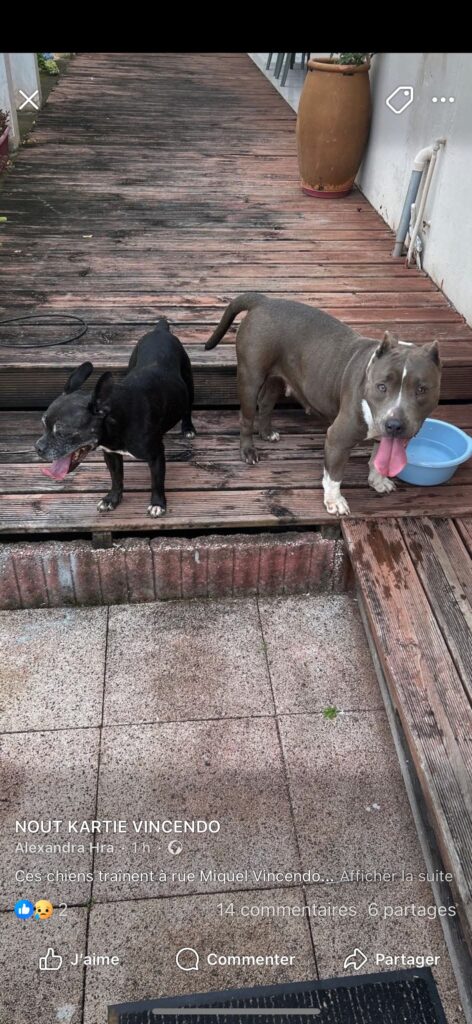 Perte par 20 décembre 2025 1 min de lecture -/2 par LEFEVRE Marion Publié: 20 décembre 2025 (il y a 1 semaine) Catégorie Perdus Perdus / Animaux Localité Secteur Vincendo- chemin des gingembres / rue dela fontaine Bonjour J’ai perdu mes deux chiennes secteur Vincendo au niveau du chemin des gingembres/ rue de la fontaine Voici les photos pouvez vous faire passer l’annonce svp ? Envoyer message Téléphone 0692314057 Votre nom * Votre eMail * Sujet * Message * Website Address Ne manquez pas toute l’actualité de La Réunion ! Abonnez-vous à la newsletter de Free Dom ! Valider Partager Facebook Twitter Pinterest Linkedin Whatsapp Reddit Email Articles récents... Hommage à Johnny Hallyday sur Free Dom 2 ce 5 décembre Mardi 30 décembre 2025 – Météo, éphéméride et horoscope du jour Saint-Joseph : découverte de 2337 plants de cannabis, arrestation de 2 individus Point sur le réseau routier départemental, 29 décembre à 16H30 Suicide sur le pont de la Rivière d’Abord : importante mobilisation des secours et des forces de l’ordre Radier submergé à Ilet Furcy : la route de Cilaos fermée à la circulation cette nuit Fortes pluies : appel à la plus grande prudence à Saint-Paul Saint-Gilles-les-Bains : une route impraticable, les riverains montent au créneau (VIDEOS) Très grands excès de vitesse : un délit passible de prison depuis le 29 décembre 2025 Fermeture temporaire du sentier de la Canalisation des Orangers (cirque de Mafate)