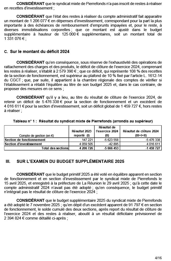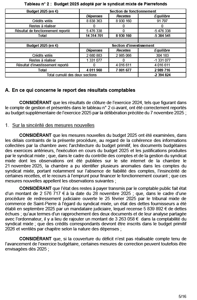 Saisie par le préfet après l’adoption d’un budget supplémentaire 2025 déséquilibré, la juridiction financière dresse un « constat préoccupant sur l’exécution du compte administratif 2024 » et alerte sur « la fragilité persistante du modèle économique de la structure. »