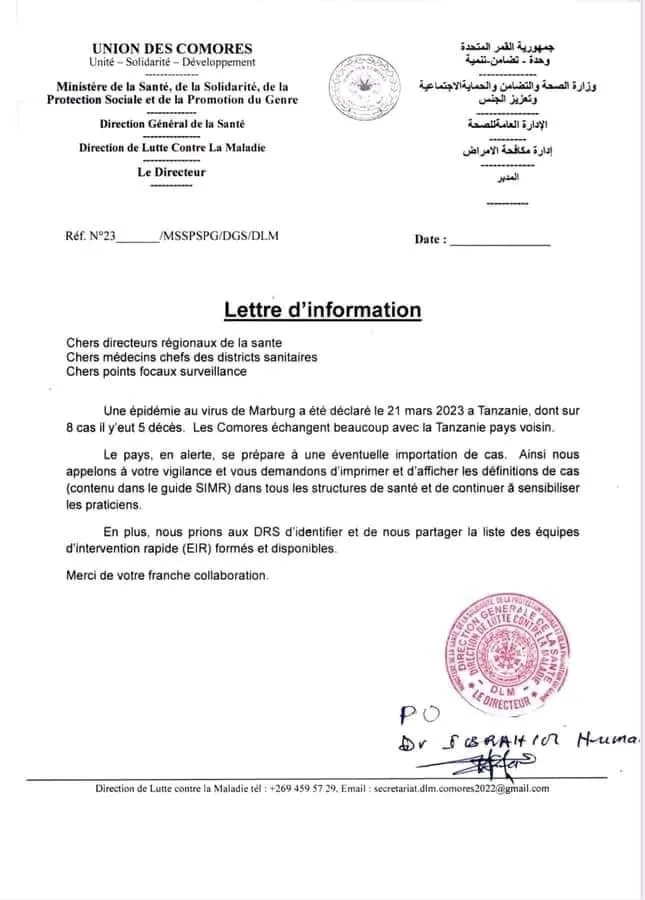 L’union des Comores en alerte dans l’éventuelle possibilité d’importation de cas.