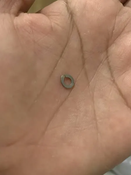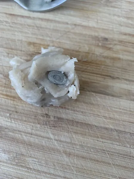 Les photos partagées montrent un fragment métallique de type rondelle coincé dans la pâte du bouchon, ainsi qu’une pièce métallique isolée retrouvée ensuite. De tels objets représentent un danger évident pour la santé des consommateurs, avec un risque d’ingestion accidentelle.