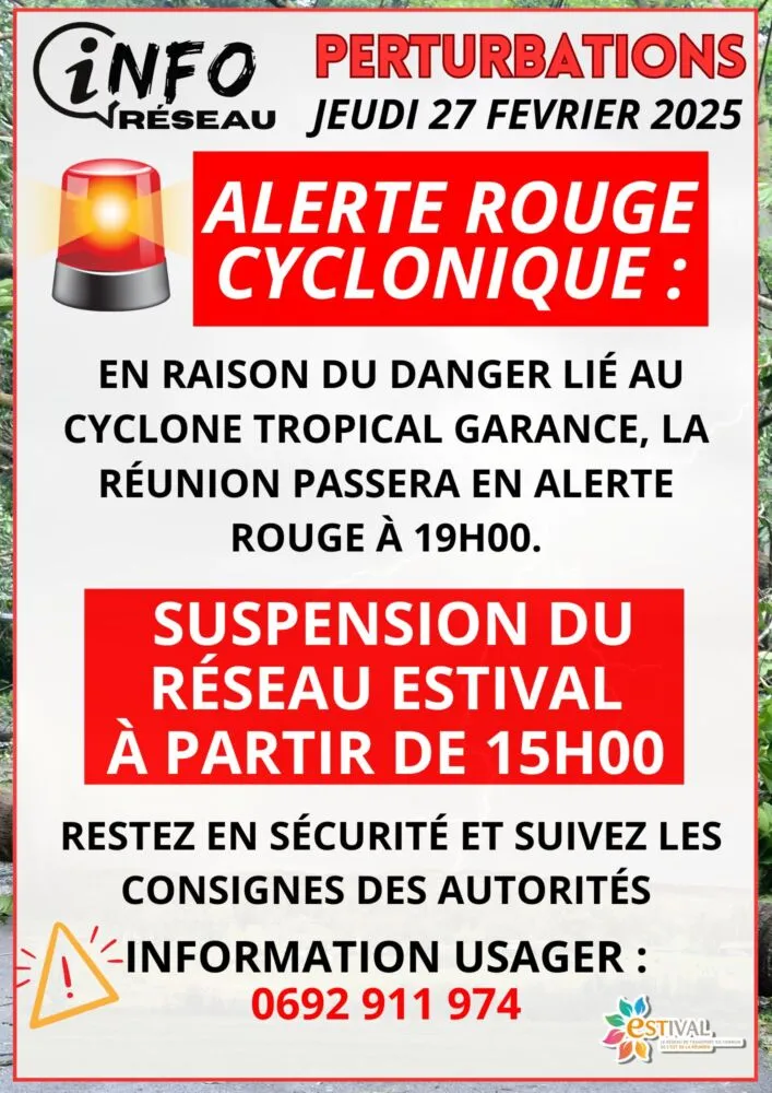 En raison du passage en alerte rouge lié au cyclone tropical Garance, La Réunion sera placée sous vigilance maximale à 19h00 ce jeudi 27 février 2025.