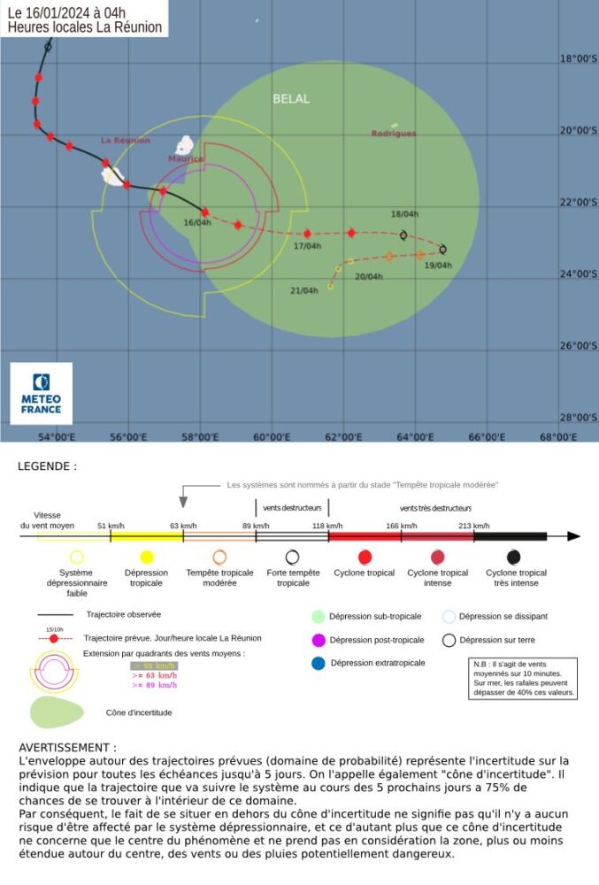 Voici la dernière position du CYCLONE TROPICAL BELAL à 4h ce mardi :