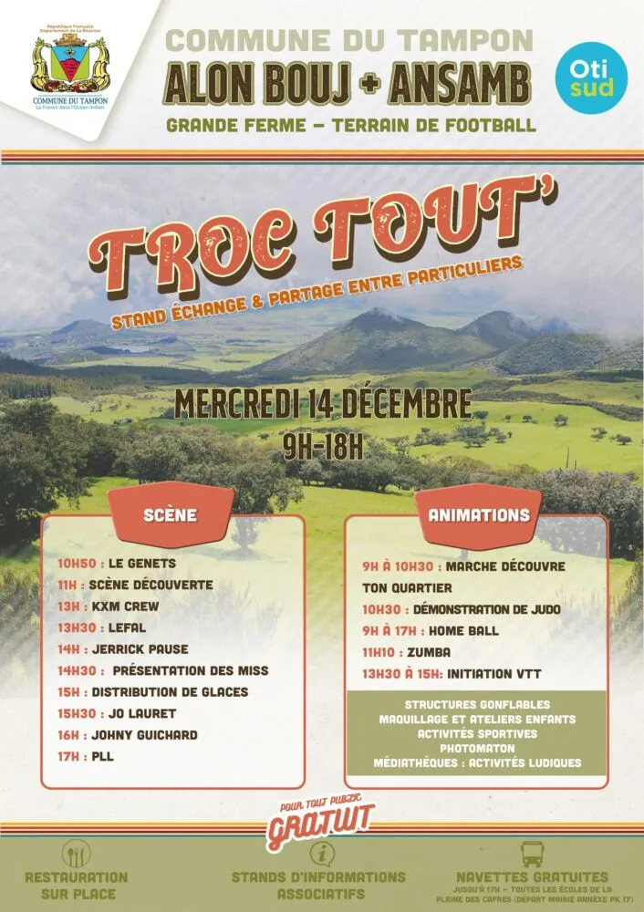 Plus d’informations au sujet du troc au : 0692 43 10 67