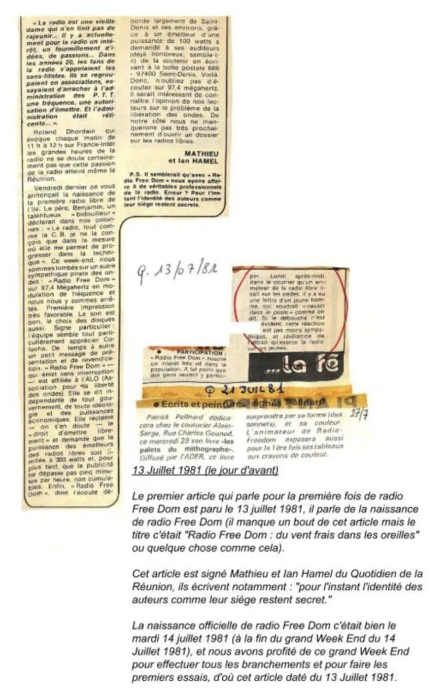 Article de Mathieu sur la naissance de Radio Free Dom : pourquoi cet article date du 13 Juillet 1981 ?