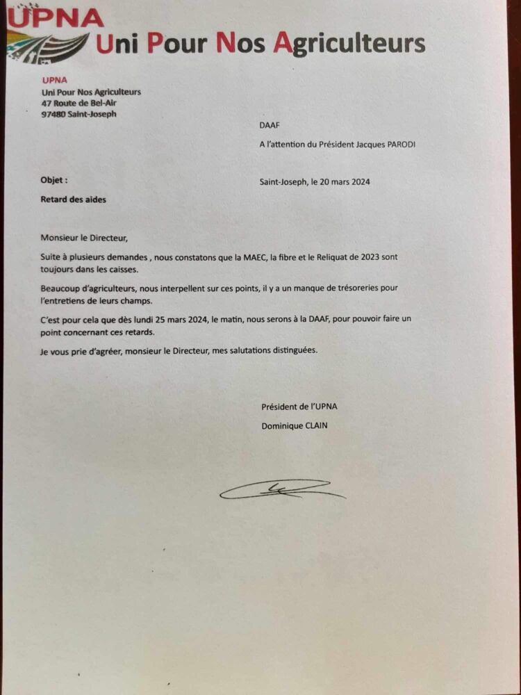L’information a été relayée par le président de l’UPNA, Dominique Clain, qui a souligné les retards dans le règlement de la Mesure Agro-Environnementale et Climatique (MAEC), de la fibre et du Reliquat de l’année 2023.