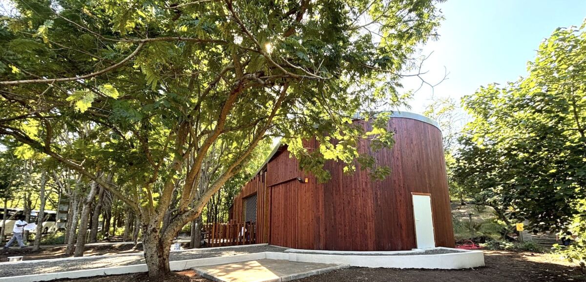 Le relais d’accueil « Ti Kaz Forêt » a été conçu pour proposer des services aux visiteurs tout en s’intégrant de manière harmonieuse à l’environnement forestier.