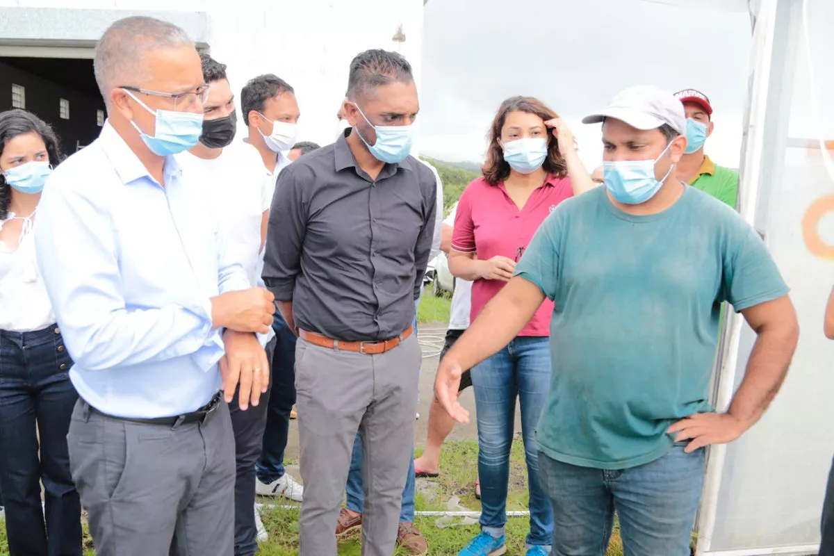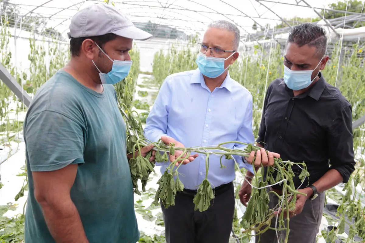 Le Président Cyrille Melchior est aussi venu à la rencontre des acteurs du monde agricole dans l’Est, ce samedi. Plus précisément à Sainte-Anne, sur l’exploitation agricole de Loïc Boyer, producteur de melons et de concombres « Les structures ont tenu car j’ai enlevé les bâches à temps. Mais toutes les cultures de melon et de concombre sont perdues » expose Loïc Boyer en montrant les plants arrachés, coupés à la racine par les rafales de Batsiraï qui a ravagé plusieurs serres. Il estime ses pertes à plusieurs dizaines de millier d’euros. Pour pouvoir relancer son activité, il a besoin de trésorerie : « La survie de mon exploitation est en jeu. Ça fait 20 ans que je suis installé et j’ai de plus en plus de mal à joindre les deux bouts. Aujourd’hui j’ai 2 personnes en CDI sur mon exploitation. Des emplois à sauver ! »