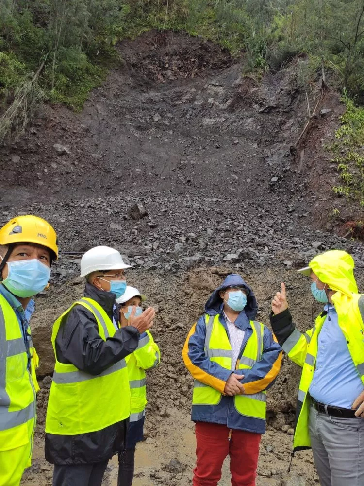 Le Président du Conseil départemental Cyrille Melchior a visité les travaux de réhabilitation des routes, à La Montagne et à Salazie après le passage du cyclone Batsiraï dans la matinée de ce samedi 5 février. Ces 2 axes majeurs ont pu être ouverts à la circulation dans le courant de la journée, grâce à la mobilisation des agents des UTR, des entreprises et du BRGM qui ont réussi à relever le défi malgré les difficultés. Au lieu-dit La Savane, le Président Cyrille Melchior entouré de plusieurs Conseillers départementaux, des techniciens et du maire de Salazie Stéphane Fouassin, a pu constater de visu l’ampleur de la tache : c’est le pan entier d’une falaise qui a enseveli la chaussée suite à un éboulement. Les engins et autres tractopelles ont tourné à plein régime pour ouvrir de nouvelles voies de circulation à double sens, permettant de « désenclaver » le village de Hell-Bourg. Mission accomplie. « Je tiens à saluer l’engagement des agents du service des routes du Département. Ils ont été, malgré des conditions météorologiques très dégradées, à pied d’oeuvre sur toute l’île. C’est grace à leur mobilisation que les Réunionnais peuvent aujourd’hui réemprunter les axes routiers départementaux » précise le Président du Département.