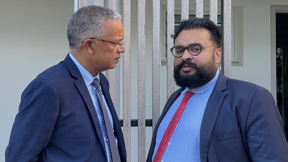 Déobal Gobin ( à droite) avec Cyrille Melchior, président du Département. (Crdéit photo : Y.M)