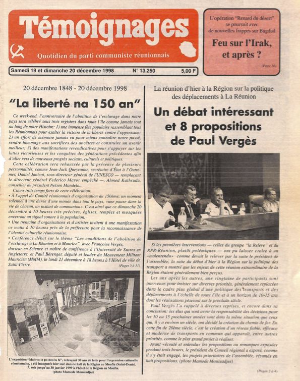 ARCHIVES : la première assemblée plénière sur la route du littoral le vendredi 18 décembre 1998