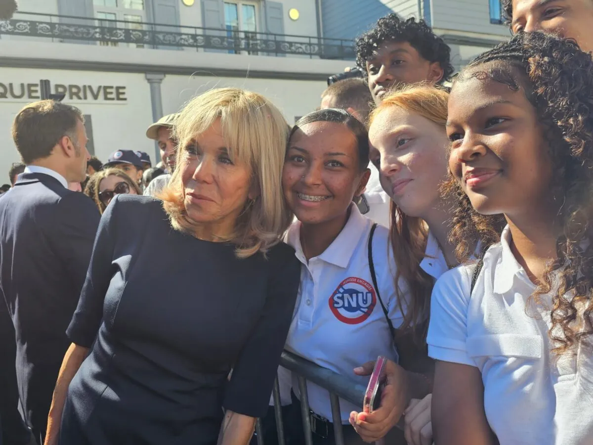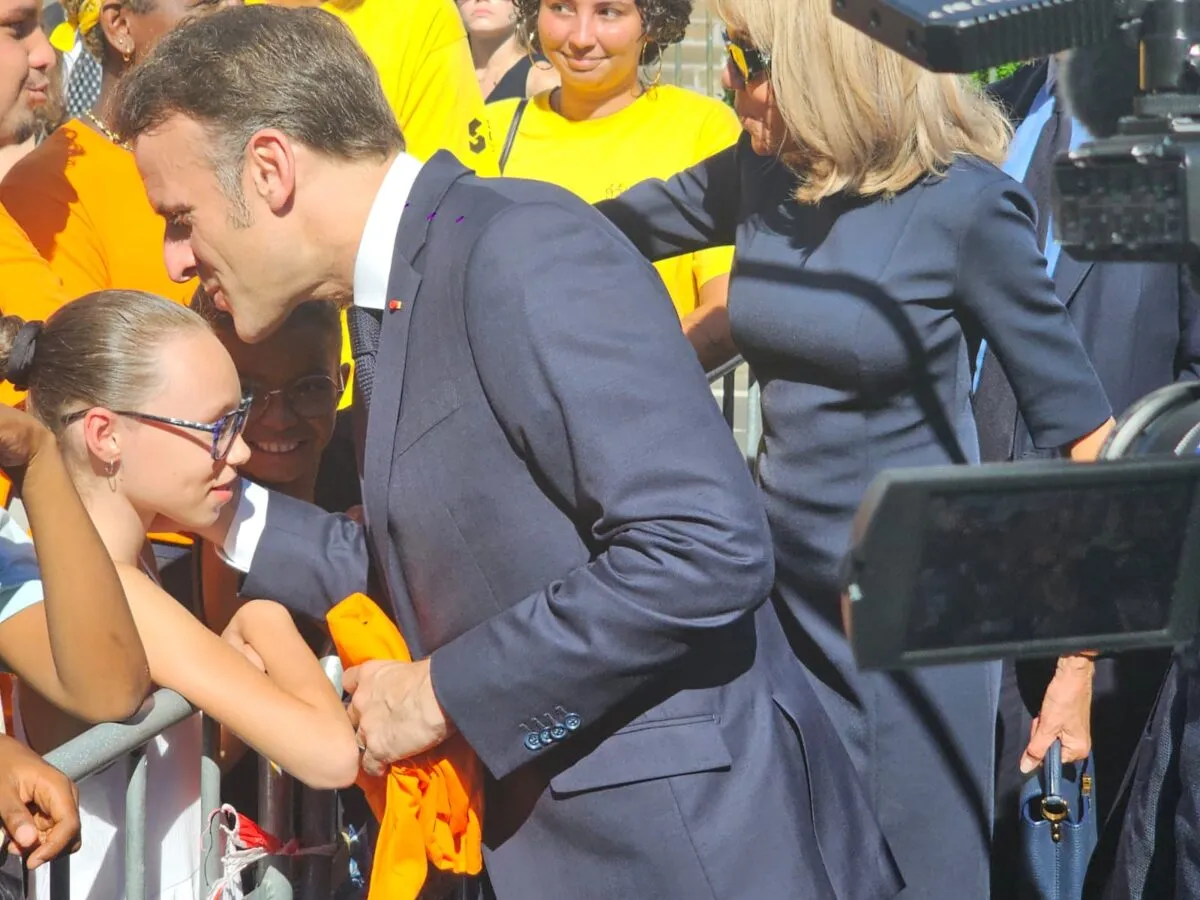 Dans les rues de Shandza Bolé, Macron a pris un enfant dans les bras, embrassé des “mamas” et serré de nombreuses mains, tout comme Brigitte Macron, également présente.