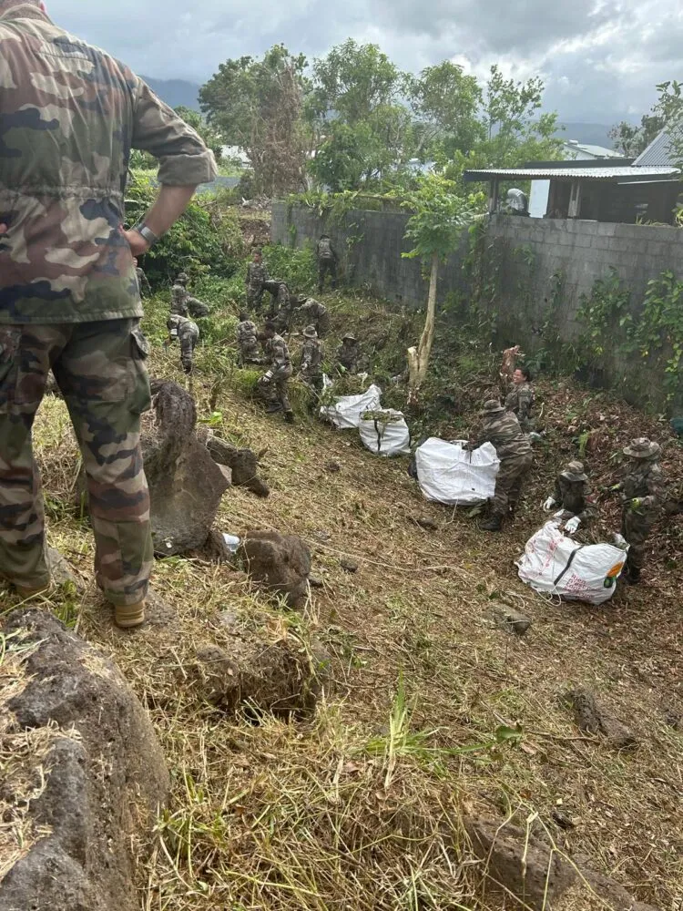 Au total, 30 RSMA viennent faire des opérations de débroussaillage pour dégager les racines qui sont des lieux de prolifération des moustiques. Par ailleurs, l’ARS mobilise 200 individus sur toute l’île pour lutter contre la prolifération des moustiques et dans le cadre de l’éradication de la maladie.