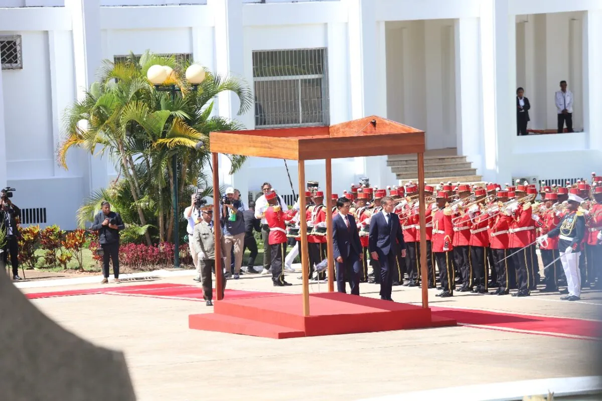 Le couple présidentiel français est arrivé à 11h50 au palais d’Iavoloha où il a été accueilli par le couple présidentiel malgache.