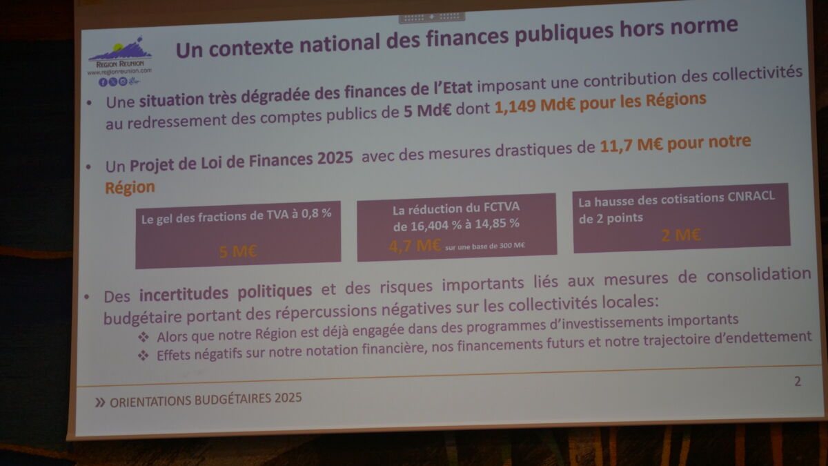 Ce matin, jeudi 7 novembre, s’est tenue l’assemblée plénière du Conseil région. Les élus ont débattu de plusieurs sujets stratégiques pour l’avenir de La Réunion. Plusieurs rapports et orientations ont été discutés, avec un accent particulier sur les orientations budgétaires pour 2025, le rapport de développement durable 2023, et le rapport sur l’égalité femmes-hommes pour la même année. Cette séance a permis de faire un bilan des actions menées tout en esquissant des perspectives pour l’année à venir.