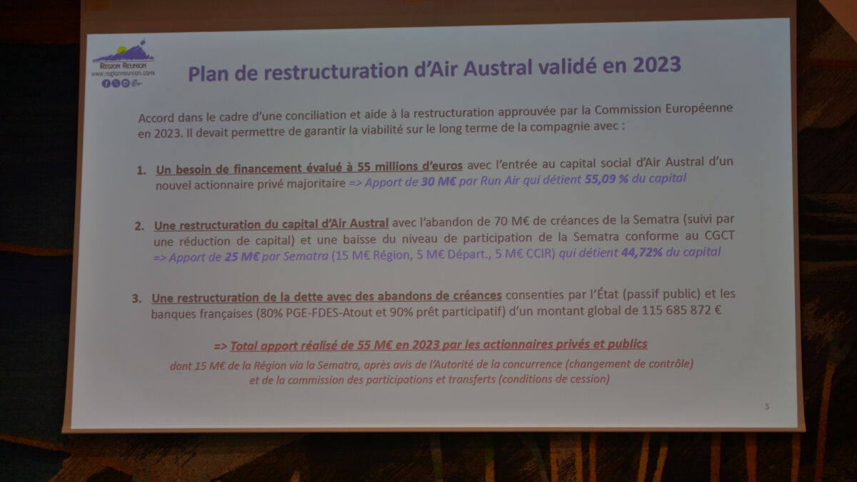 Le plan de restructuration vise à redynamiser la compagnie après les défis financiers et opérationnels de ces dernières années, notamment depuis la crise du COVID-19 qui a fortement impacté le secteur aérien. Cette aide financière apportée par la Région permettra à Air Austral de consolider sa trésorerie et de continuer à améliorer ses services, garantissant ainsi la pérennité de ses activités et la continuité de son service pour les voyageurs de l’île.