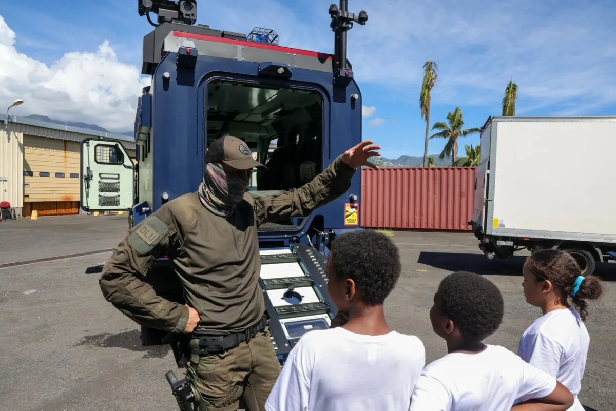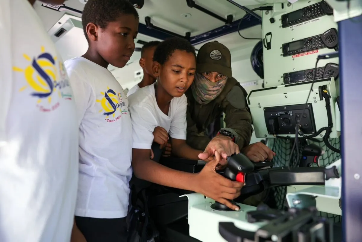 Dès leur arrivée, les enfants ont assisté à un exercice spectaculaire mené par l’antenne GIGN de la Réunion avec le véhicule blindé Le Centaure, impressionnant engin de 14,5 tonnes doté d’incroyables équipements technologiques. Le scénario : une intervention suite à un vol à main armée. Faux coups de feu, explosion simulée et arrestation express ont plongé les marmailles dans l’univers aussi fascinant qu’impressionnant des unités spéciales.