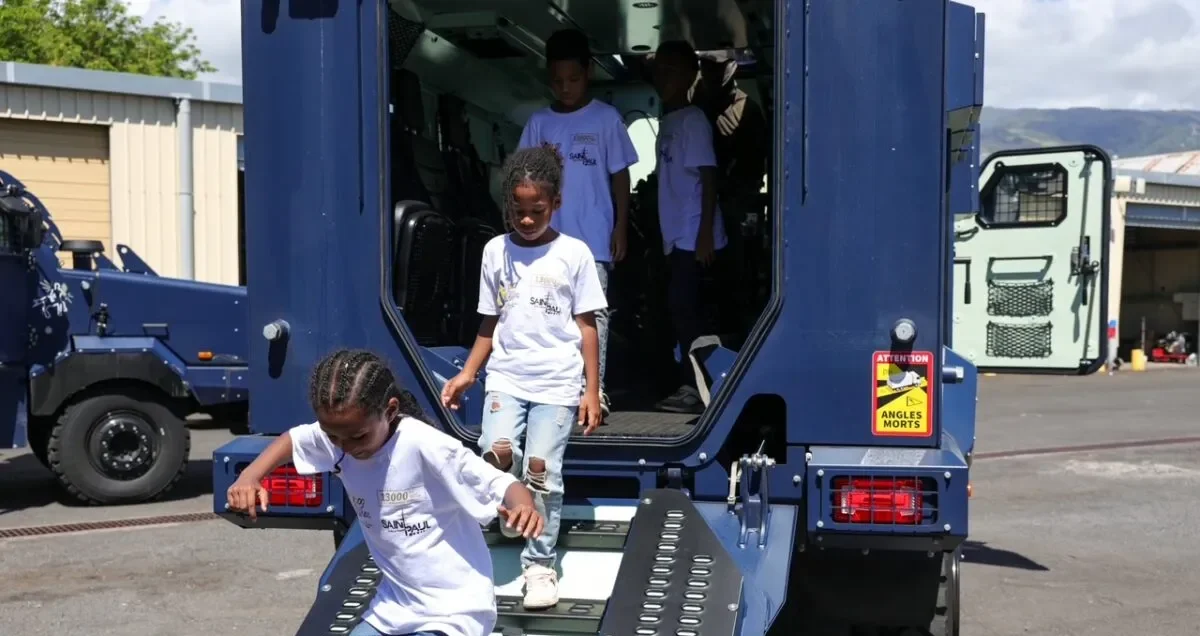 Pascal Marcher, chef de la section formation et personnel civil, s’est dit ravi d’avoir accueilli les marmailles de 1000 Sourires pour cette matinée en VIM (Very Important Marmailles). Une expérience citoyenne forte, qui aura sans doute semé quelques graines d’inspiration parmi ces enfants émerveillés.