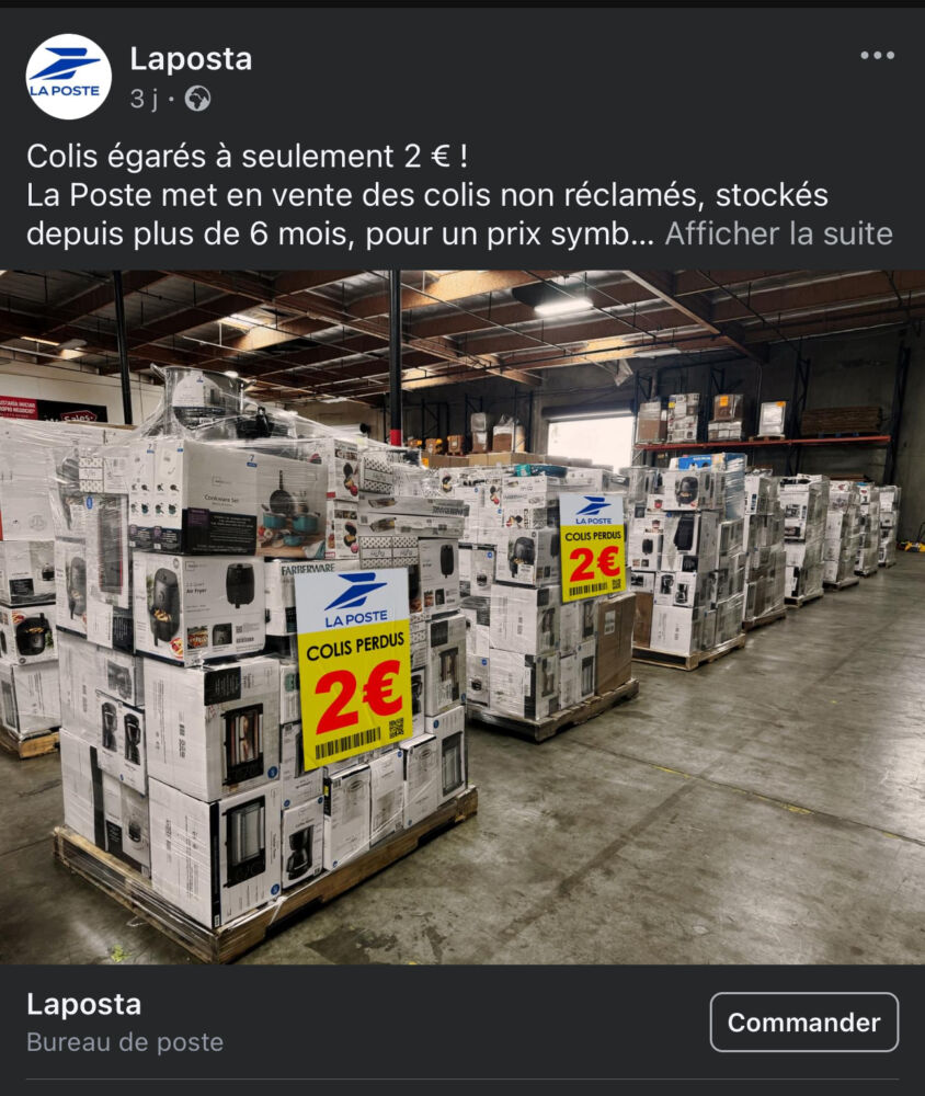 Vous avez peut-être récemment vu sur Facebook des publications provenant de pages comme « Colis Postaux Oubliés » ou « Laposta », qui proposent de racheter des colis perdus ou oubliés pour une somme modique, souvent moins de 2 euros. Attention, il s’agit d’une arnaque. Ces comptes cherchent à attirer des victimes en prétendant vendre des colis non réclamés, mais en réalité, ils visent à collecter vos informations personnelles ou à vous soutirer de l’argent de manière frauduleuse.
