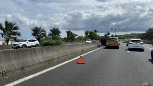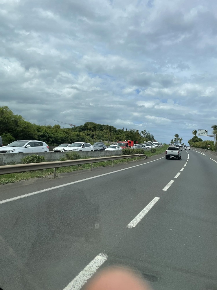 Carambolage sur la 4 voies de Saint-Pierre avant Pierrefonds, impliquant quatre véhicules. Juste après la sortie numéro 28. La voie de gauche est neutralisée. Soyez prudents, car des débris jonchent la chaussée et les passagers sont sortis de leurs véhicules, pouvant constituer un danger supplémentaire. Embouteillage en cours.