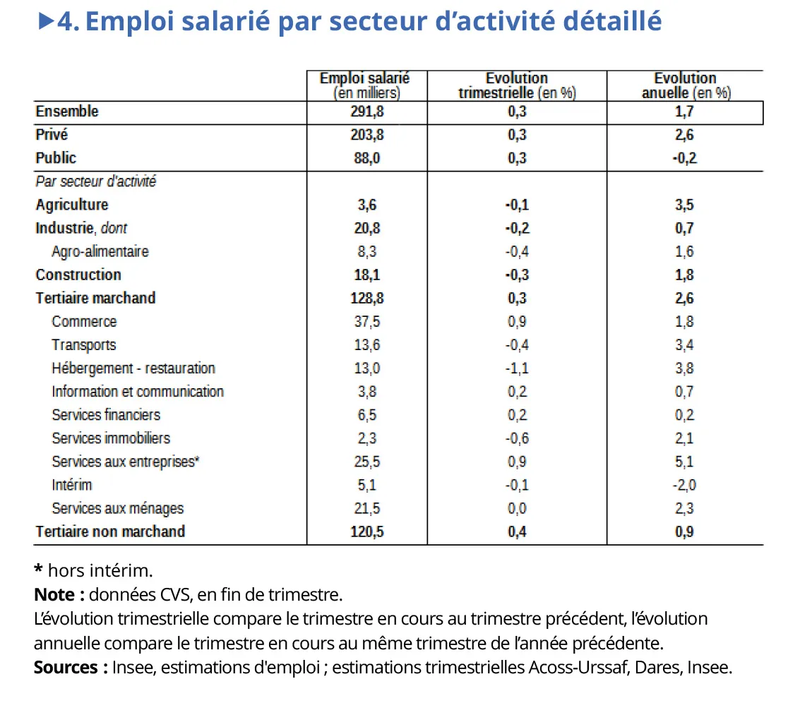 d’emplois augmentent de 0,1 % au 2e trimestre après +0,4 % au trimestre précédent.