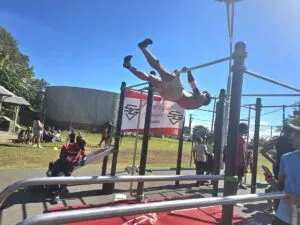 Parmi les disciplines proposées, le Street Workout tient une place centrale. Noah Saint-André, étudiant de 21 ans en licence STAPS, s’entraîne régulièrement sur le site de la Bretagne avec ses amis :