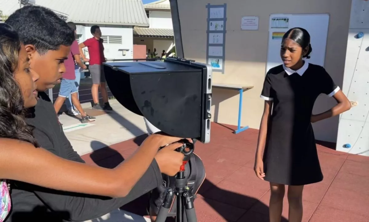 « Silence plateau ! Moteur ! Action ! » Ça tourne au collège Plateau Goyave où des élèves préparent un spot sur le thème de la lutte contre le tabagisme depuis le mercredi 4 mai dernier. Devant les caméras, les élèves de l’atelier théâtre mettent en scène un scénario qu’ils ont écrit eux-mêmes avec l’aide de leur professeur de français. Et à la technique, s’activent ceux du Club média du collège, dotés d’un nouveau studio école financé par le Département depuis l’année dernière. Ce projet vise à sensibiliser le public dans le cadre de la journée mondiale sans tabac, le 31 mai 2022.