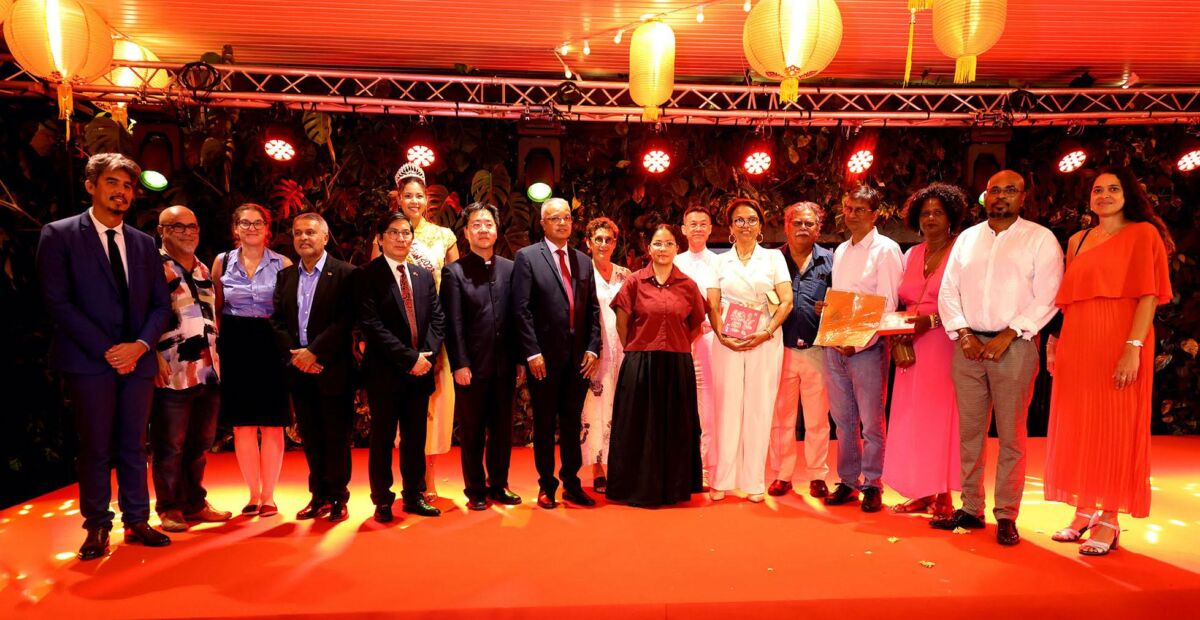 Entouré des élus du Département – Jean-Marie Virapoullé, Béatrice Sigismeau, Eglantine Victorine, Aurélien Centon, René Sotaca, Jeanne Hoareau, Augustin Cazal, Isabelle Erudel – le Président a accueilli les représentants de la communauté chinoise et plusieurs invités de marque dont Marie-Jo Lo-Thong, directrice de la DAC OI qui a représenté le Préfet ; le Consul général de la Chine à La Réunion Chen Xiaolei, le Consul général de l’Inde Bhupendra Singh ; le Consul honoraire de Maurice Younouss Ravate ; le Président de la Communauté juive à La Réunion Marc Obadia ; Monseigneur Pascal Chane-Teng, Évêque de La Réunion et les membres du Groupe de dialogue inter-religieux.  Sans oublier les dirigeants d’associations chinoises réunies au sein de la Fédération présidée par Daniel Thiaw Wing Kaï.