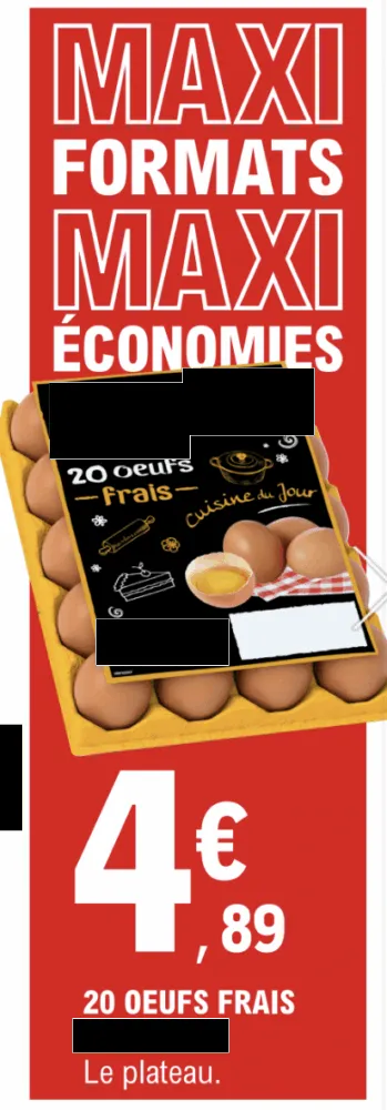 À comparer avec certaines grandes enseignes de l’île, qui affichent fièrement une “PROMO” : 20 œufs à… 4,89 €. Faites le calcul : pour 10 centimes de plus, vous avez 10 œufs supplémentaires chez le commerçant du coin.