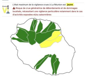 La prudence est de mise dans le cadre des activités exposées sur l’ENSEMBLE DES COURS D’EAU de l’île concernés par les pluies, principalement en cas de submersion de radiers.
