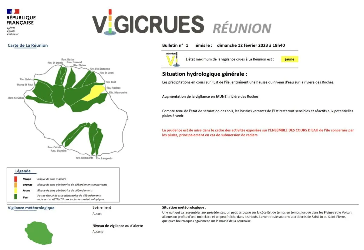 Augmentation de la vigilance en JAUNE : rivière des Roches.