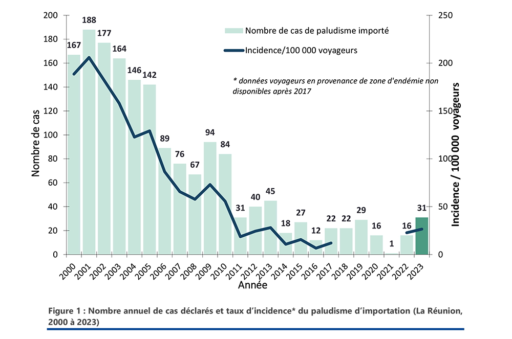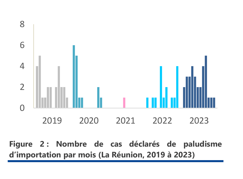  Augmentation du nombre de cas de paludisme importés déclarés à la Réunion en 2023 (après la baisse liée à la pandémie à Covid-19 et la fermeture des frontières)