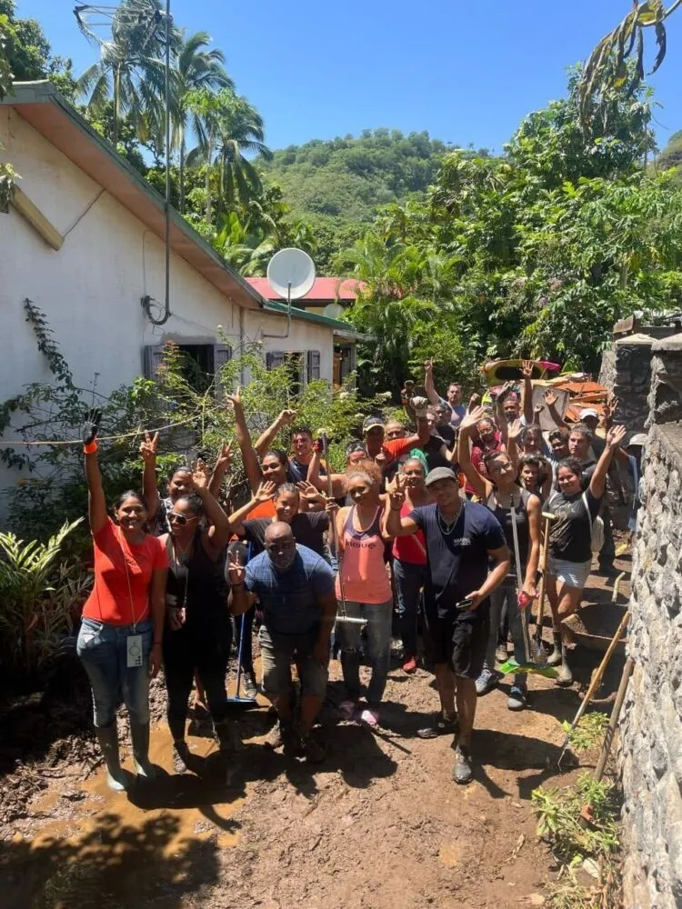 Aurélien Centon et les bénévoles au secours des sinistrés de Saint-Paul