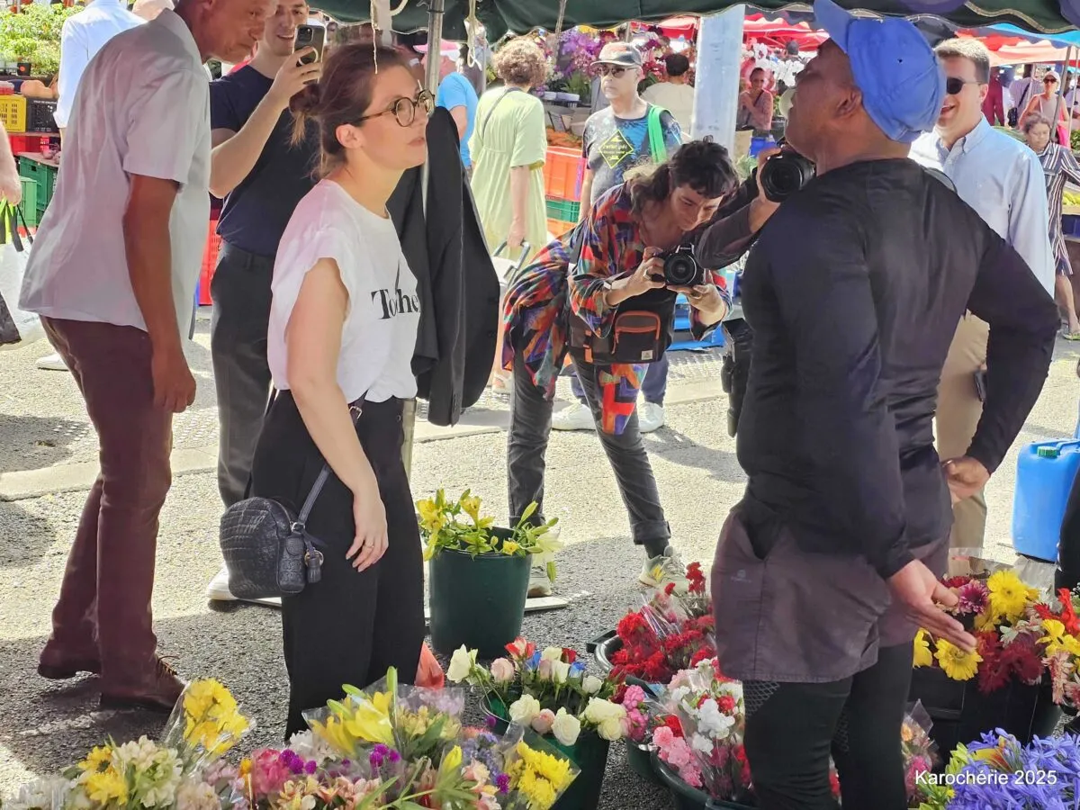 Moment plus cocasse devant un étal de fleurs : un fleuriste, visiblement conquis, tente de lui offrir ses plus belles tiges, sous les plaisanteries d’une foule amusée, certains évoquant presque une demande en mariage improvisée. Mais la ministre reste fidèle à sa ligne de conduite. Pas question d’accepter des cadeaux. Du piment aux grappes de letchis, tout est réglé de sa main. Une façon claire de rappeler que le travail des forains est leur gagne-pain et mérite respect.