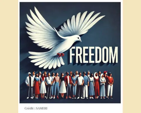 « Formidable affiche de la colombe qui survole son peuple : une population qui montre bien la diversité et le vivre ensemble de la Reunion … Bravo, bravo pour cette affiche de paix, de tolérance et de pluralisme !