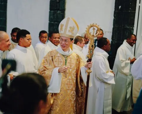 À l’occasion de la messe de la fête patronale présidée par Monseigneur Pascal Chane Teng, le maire de Saint-Benoît, Patrice Selly, a inauguré ce vendredi la fresque restaurée de l’église de Saint-Benoît, aux côtés du père Roger, du sous-préfet et