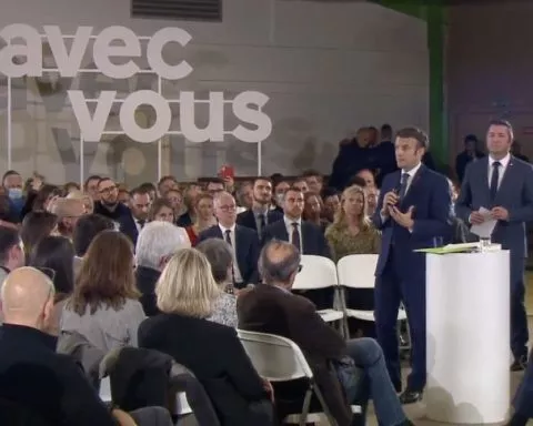 Le « candidat » Emmanuel Macron a fait ses premières promesses de campagne devant 250 personnes à Poissy, dans les Yvelines, dont le maire, Karl Olive est un l’un de ses soutien.