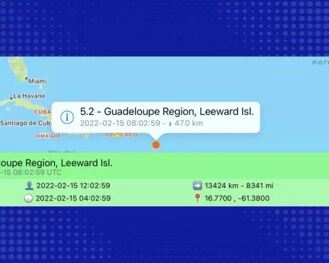 Ce mardi 15 février 2022 à 04:02 (heure locale), un séisme modéré (magnitude 5.4 ± 0.3) a été enregistré et identifié de type tectonique. L’épicentre a été localisé à 39 km au nord−nord−est de Anse−Bertrand, à 61 km de profondeur