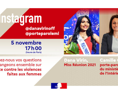 Ce vendredi 05 novembre 2021, vous pourrez poser toutes vos questions à Camille Chaize, porte-parole du Ministère de l’Intérieur et à Dana Virin, Miss Réunion 2021 pour Miss France 2022 en live Instagram, en direct à 20h. Retrouvez le nouveau
