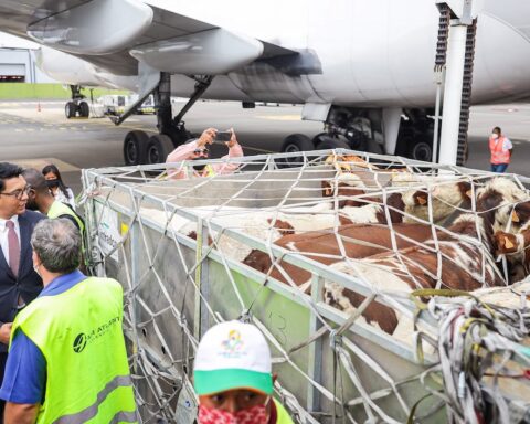 Mardi 5 octobre 2021, à Ivato, 165 laitières de race normandes et montbéliardes sont arrivées en provenance de Métropoles à bord un vol spécial cargo Boeing 747.