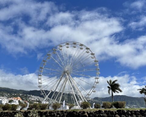Installée depuis hier à Saint-Denis, la grande roue a subi ce matin un contrôle technique et de sécurité avec Franck qui le technicien attitré venu de Métropole et ses collègues.