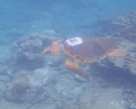 La caoaunne cc Davina a retrouvé l’océan aujourd’hui. Sans ses parrains et marraines de l’école Maxime Laope de La Bretagne qui n’ont pu l’accompagner pour cause de Covid. Mais des images ont été tournées par l’équipe de kelonia, et les