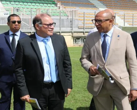 Une rencontre entre passionnés du ballon rond ce mardi 29 avril. David Lorion, maire de Saint-Pierre, Philippe Diallo, président de la Fédération Française de Football (FFF), Rosaire Moriscot, président de la Ligue Réunionnaise de Football (LRF), Sanda Manohisoa, représentant de
