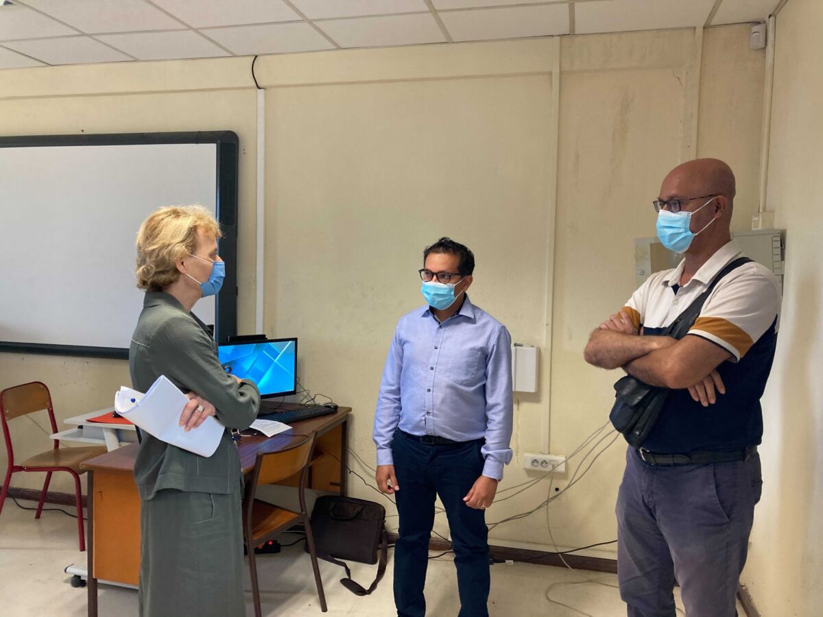 La rectrice Chantal Manès-Bonnisseau, est présente ce lundi 14 juin au lycée Sarda Garriga à Saint-André pour un point sur l’organisation de la session 2021 du baccalauréat 2021. Elle rencontre l’équipe du lycée, qui est mobilisée pour l’organisation des épreuves du bac.