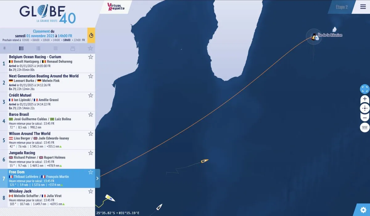 Globe 40 : le bateau Free Dom fait route vers La Réunion (Podcast – Vidéos )