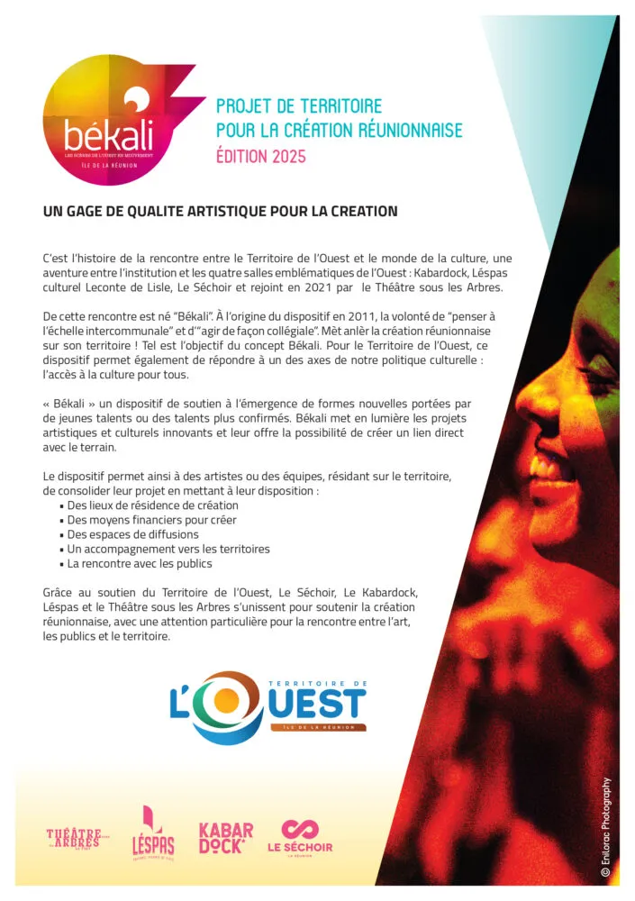 Ce vendredi 10 octobre 2025 le Territoire de l’Ouest et ses quatre salles partenaires – Lespas, Le Séchoir, Le Kabardock et Théâtre sous les Arbres – ont présenté les lauréats du dispositif Békali 2025-2026.