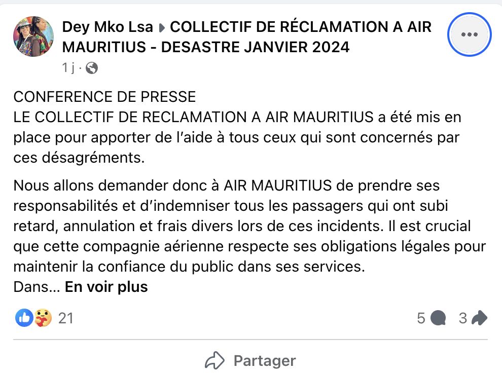 Selon le collectif, Air Mauritius n’aurait pas respecté la norme européenne de prise en charge des passagers.