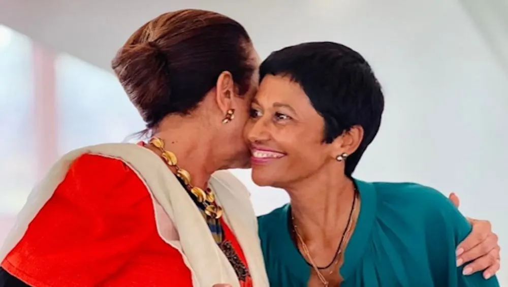 Huguette Bello (robe rouge) et Ericka Bareigts. (Crédit photo : Yves Mont-Rouge)