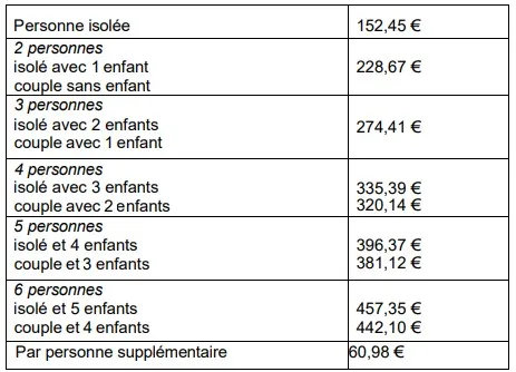 Les montants 2022, variables selon la taille de famille, sont les suivants :