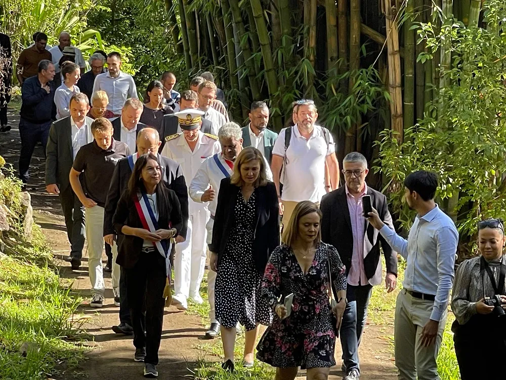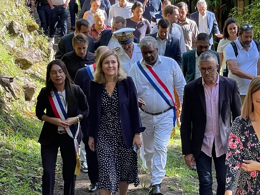 À Salazie, Yaël Braun-Pivet a été accueillie par la maire Sidoleine Papaya, le sénateur Stephane Fouassin, le député Jean-Hugues Ratenon et Patrice Selly, maire de St-Benoit et président de la Cirest. La maire de Salazie compte beaucoup sur le fonds Barnier (fonds européens) et le fonds vert (État) pour faire face aux problèmes de glissements de terrains. La commune travaille en étroite collaboration avec les services de l’Etat (préfecture, ONF…) ainsi qu’avec l’EPFR (Département)